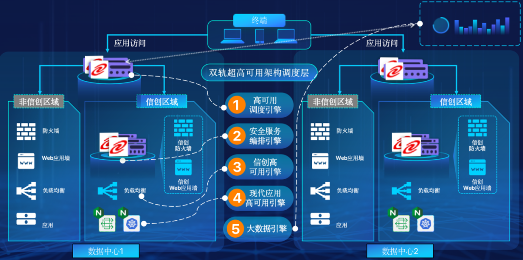 AG庄闲游戏在企业面临自主创新IT基础重构过程中,推出的全新架构双轨超高可用架构(简称DTMAA),在双活数据中心的分区调度基础上,添加每个数据中心内信创域和非信创域的分域调度,来实现分区分域协同的多活双轨超高可用。